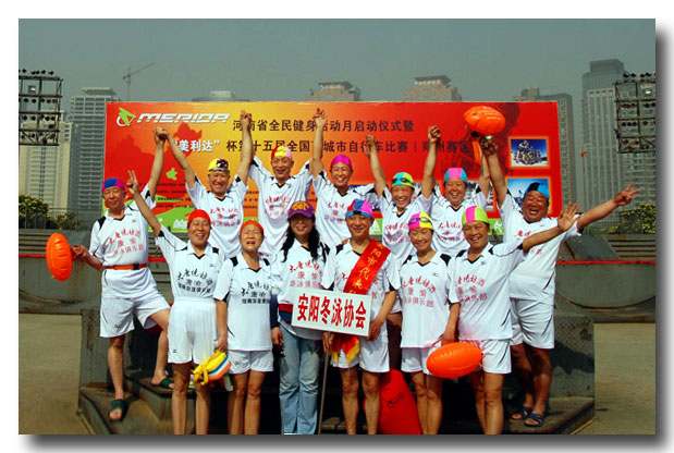 2010年5月1 日安阳泳友赴郑州参加河南省全民健身月启动仪式。