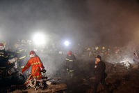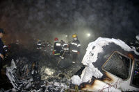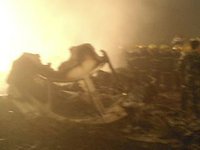 ![]() 救援人员现场搜寻黑匣子 | ![]() 救援人员现场清理 | ![]() 现场火光冲天 | ![]() 飞机被烧成碎片 | ![]() 医护人员现场待命 |