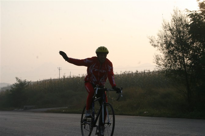9月26日早4点30分,先头部队从建昌镇出发,到5点的时候,一行8人全部会合,从此开始了长达130公里的骑行。 骑上单车,穿行在那高低不平的坡道上,有上坡的辛苦,也有下坡冲刺的刺激;有偶尔轻松的平路骑行,也有穿行在人海中的拥挤;行在路上,不时有微风送来,让你感到神清气爽,即使是骑行在陡峭的盘山路上,耳边听到的却是那山谷的回音,也会让你觉得悠远空灵……