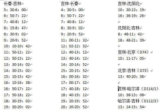 3。哈尔滨-吉林动车1对,车次D114/1/2/3。