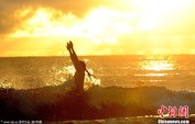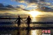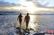 2012年9月22日消息,英国诺森伯兰郡,200名裸泳爱好者在朝阳中冲入当地的Druridge海湾,准备打破集体裸泳人数世界纪录。图片来源:CFP视觉中国