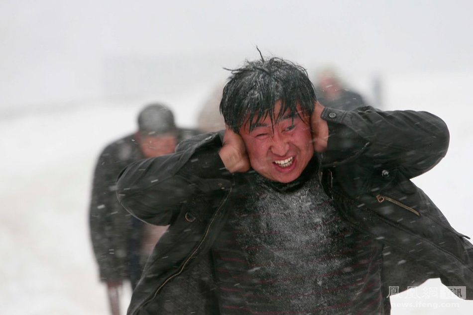 11月4日,一名在暴雪中徒步到集结点的男子。秦斌 摄