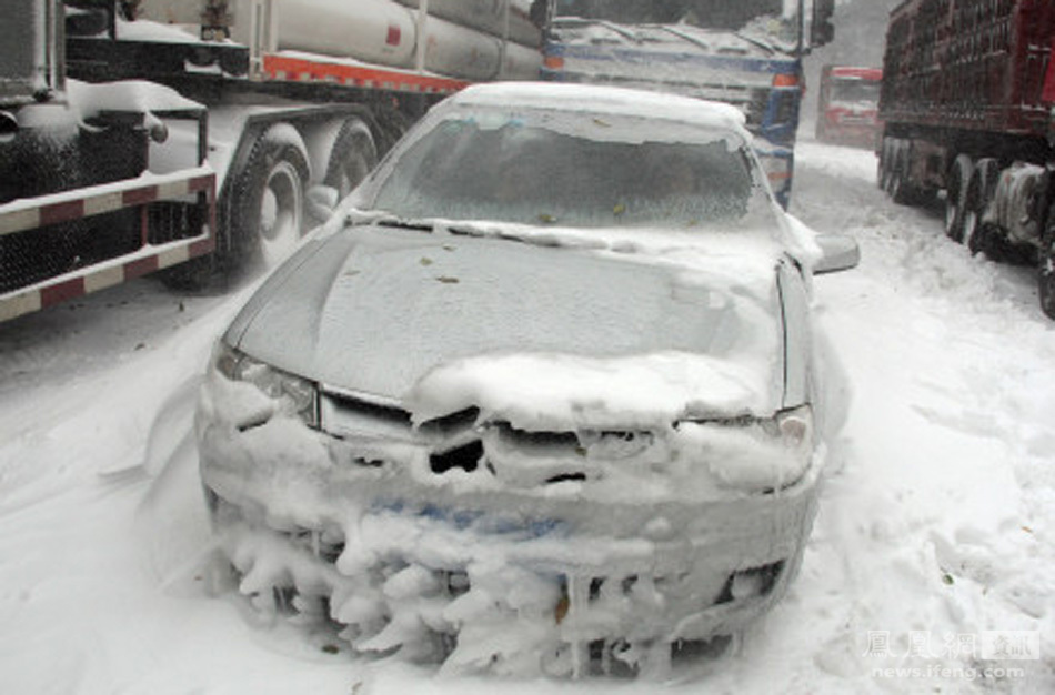 11月4日,八达岭高速积雪40厘米致数百辆汽车拥堵。