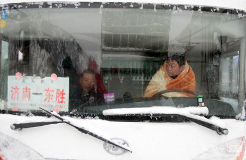 11月4日,一辆被困19小时的大客车在等待通行的命令。秦斌 摄