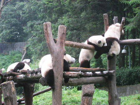 今年3月10日晚上,成都大熊猫繁育研究基地一只5岁半的美女大熊猫“科琳”进入发情高潮期,与她两情相悦的基地第一帅哥“勇勇”也同步达到发情高潮。眼看时机已经成熟,基地科研人员遂决定让他们圆房。然而,令科研人员没料到的是,刚刚成年的“科琳”还没交配经验,只愿意倒在地上玩耍。
