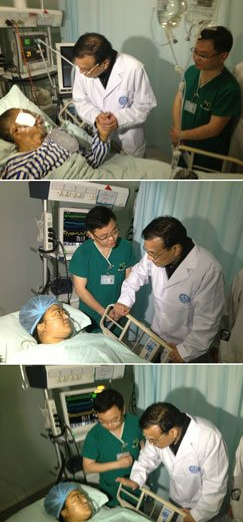 【李克强探望伤员:不用担心医药费】在一位老人家身边,李克强说:“您安心养病,医药费不用担心,政府会管您的。”当得知一位女伤员因与丈夫和儿子失去联络,情绪低落时,李克强说:“别总想以前,多想以后。救援人员会积极寻找的,你放心。”(人民日报记者 白真智)