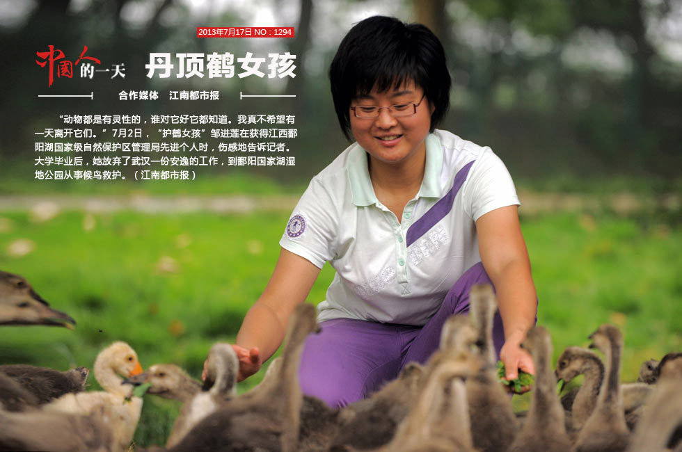 “动物都是有灵性的,谁对它好它都知道。我真不希望有一天离开它们。”7月2日,“护鹤女孩”邹进莲在获得江西鄱阳湖国家级自然保护区管理局先进个人时,伤感地告诉记者。大学毕业后,邹进莲放弃了武汉一份安逸的工作,到鄱阳国家湖湿地公园从事候鸟救护。