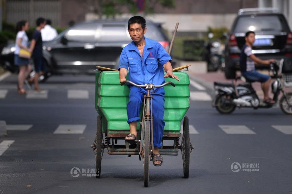 汇泉湾泳客 发表于 2013-7-24 04:26 老郑轻松地踩着保洁车行驶在自己清扫的区域。