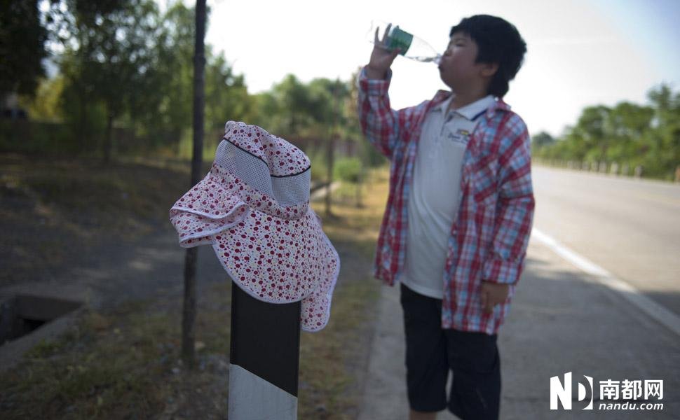 8月4日上午11:21,S217省道往邵阳市方向离邵阳还有81公里,烈日当空,在经过了一个长坡后,小宝开始有点跟不上爸爸的步伐,尽管爸爸再三鼓励,但是小宝还是有些吃力,神情开始有些恍惚。