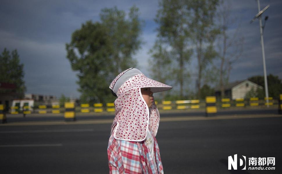 一路沿着国道向北行走,7月21日开始,母女俩从清远前往阳山,国道旁稀有人烟,且山路盘旋,并不好走,还要担心窄路上风驰电掣的大汽车。与提心吊胆的母亲不同,小宝的兴奋劲又回来了。山脉间分布着大大小小的农庄,挂着小南瓜的凉棚,还有忽然不知道从哪蹦跶出来的大黄狗,都让这个城市小姑娘觉得新鲜。图为8月3日早上7:35,S217往邵阳市方向离邵阳还有112公里,太阳出来了,小宝把妈妈给她买的帽子戴上,这样就不会晒伤脸蛋。