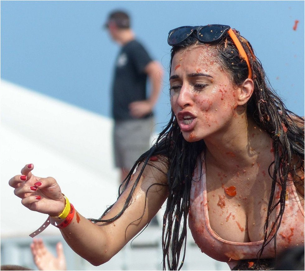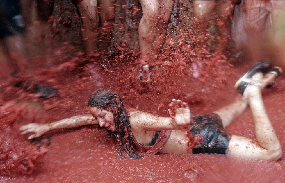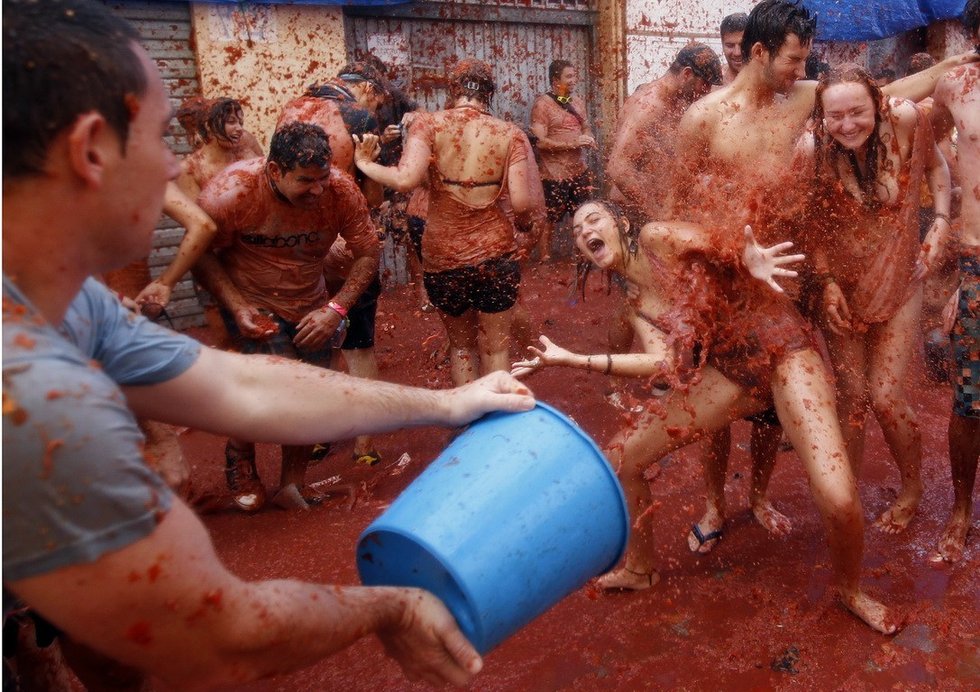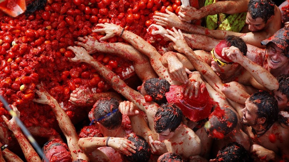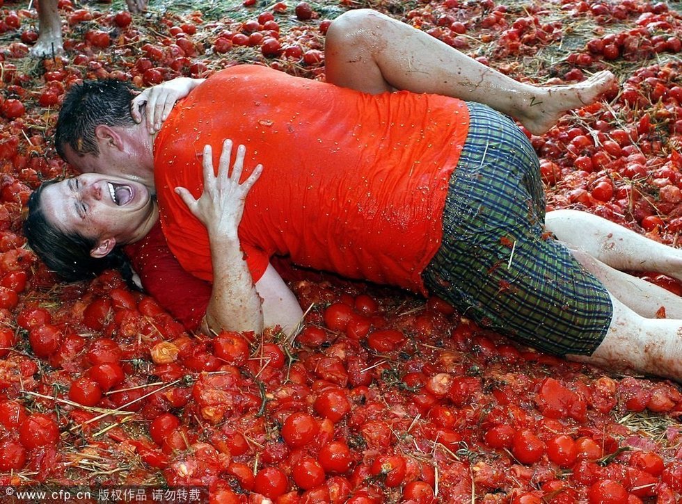 近日,美国纽约数千人一齐涌向布鲁克林体育馆周围,参加首次举办的“番茄大战”。参加者相互投掷西红柿尽情狂欢,为持续中的高温天气创造了一片红色海洋。
