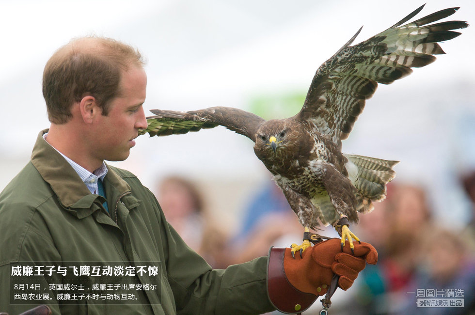 8月14日,英国威尔士,威廉王子出席安格尔西岛农业展。只见头发逐渐秃顶的威廉王子,不时与动物互动。
