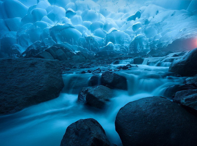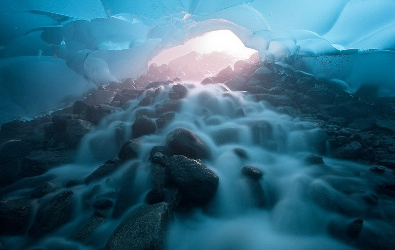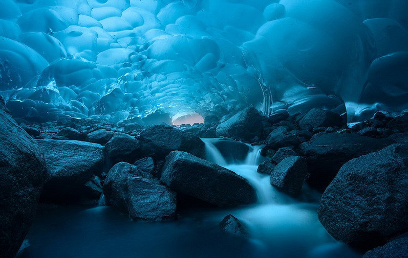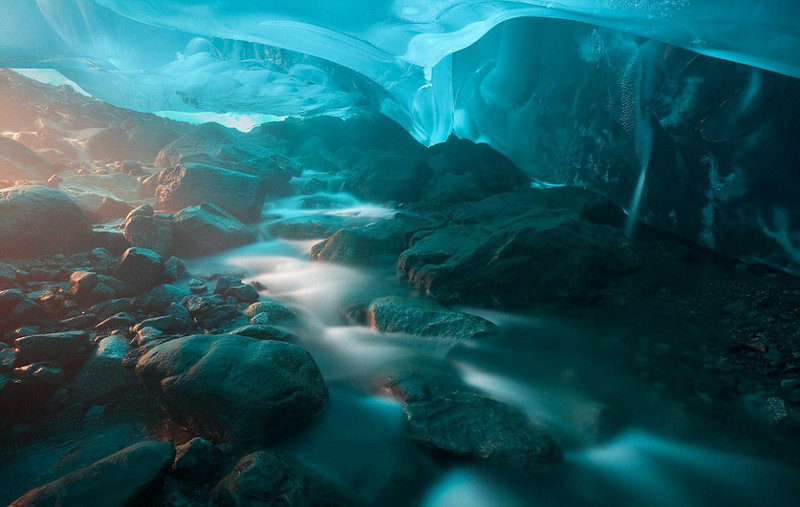 腾讯科学讯(悠悠/编译) 据英国每日邮报报道,31岁的数学教师肯特-梅里格(Kent Mearig)是一位摄影爱好者,他每年都会来自美国阿拉斯加州缅田豪冰川进行拍摄,在阳光的照射下,冰川之下将呈现出美妙的景象,犹如进入一个神秘而美丽的外星球环境。