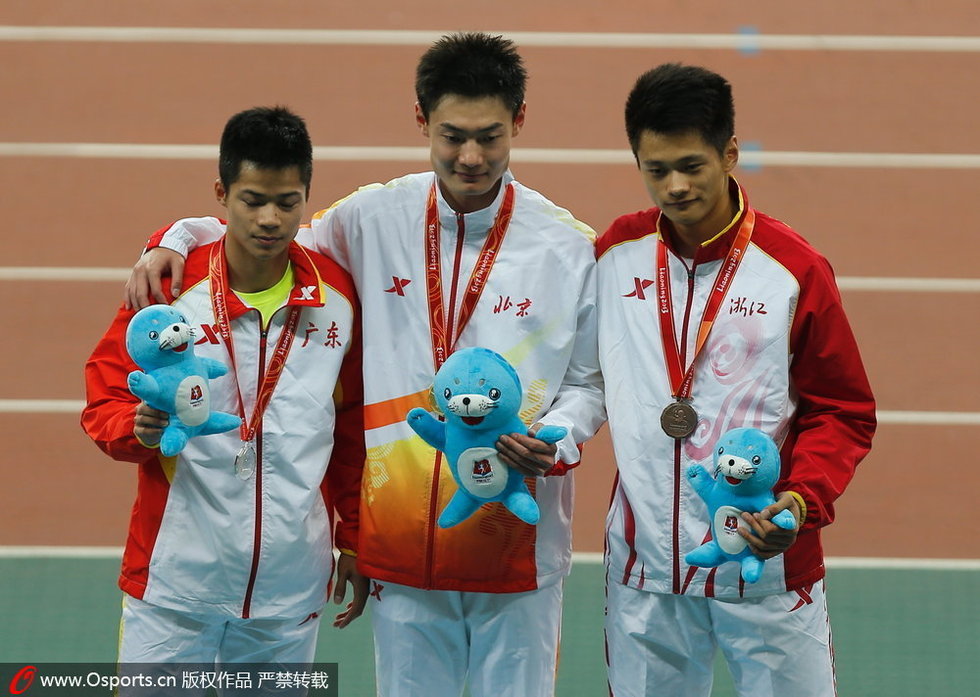 2013年9月8日,2013年第十二届全运会男子100米决赛:张培萌未破10秒仍夺冠 苏炳添获亚军