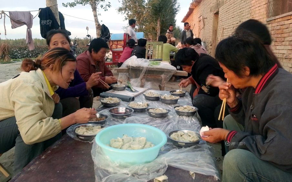 新疆奎屯,来自河南的棉农们。这44位棉农搭乘L29采棉专列经过58个小时的长途跋涉从许昌到达奎屯,他们将在这里工作和生活2个多月。这顿饺子是他们的中秋晚餐,也是这两个多月中他们最好的一顿伙食。