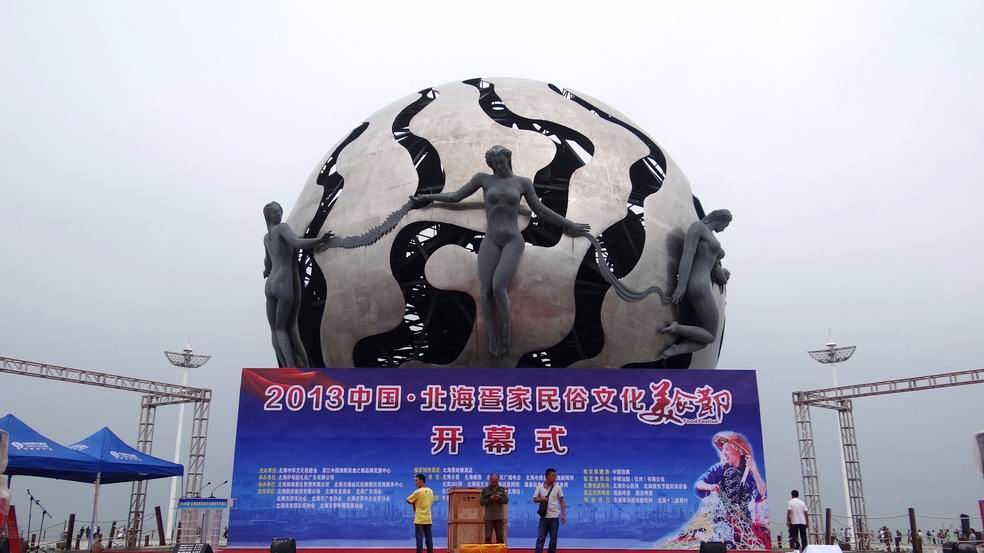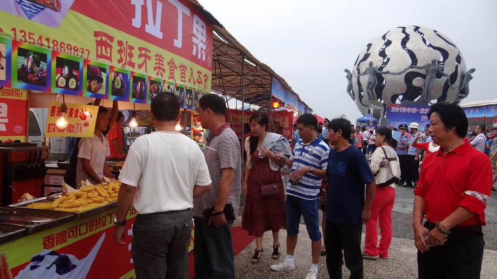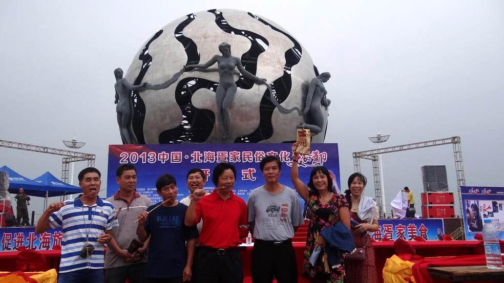 视察了海泰活动基地后,队员们前往银滩公园参加“2013中国·北海蛋家民俗文化美食节”