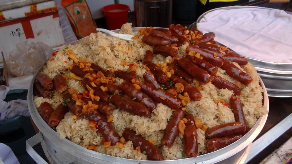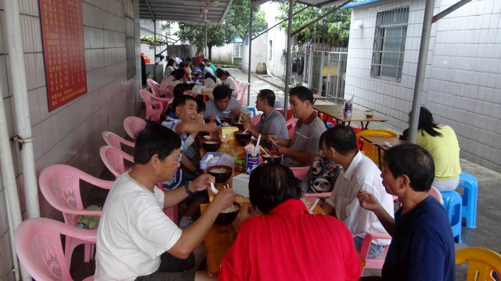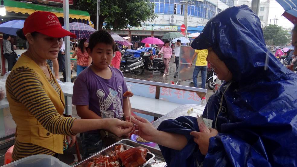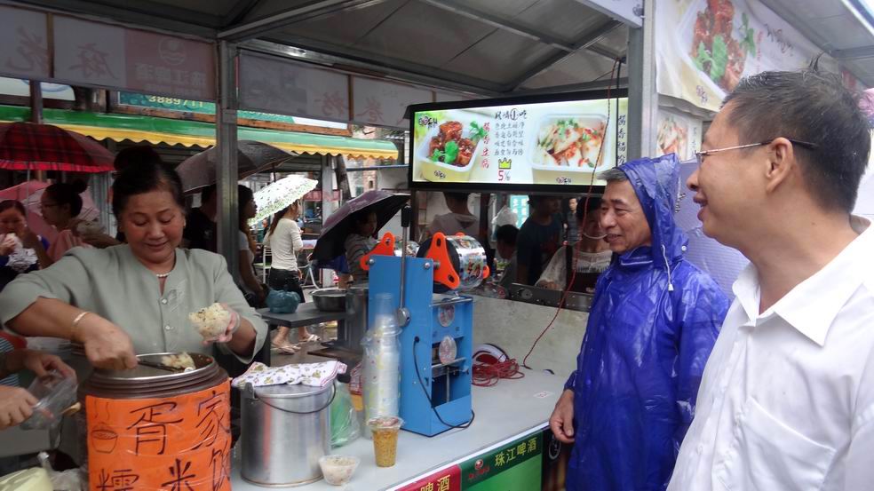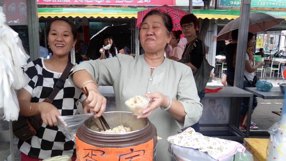 这是摇艇送人的家英,家英也要了个摊位买自已家里煮的蛋家糯米饭。蛋家人的生炒糯米八宝饭非常好吃。我表扬家英,家英笑到张不开嘴。