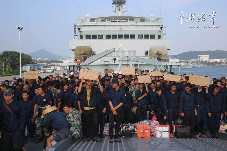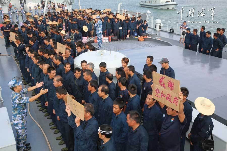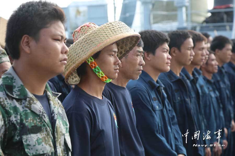 部分渔民在落水后被琛航岛官兵救起,得到悉心的照料,吃的住的都和岛上官兵一个样,官兵还把作训服赠送给他们穿。