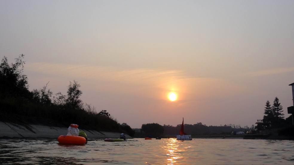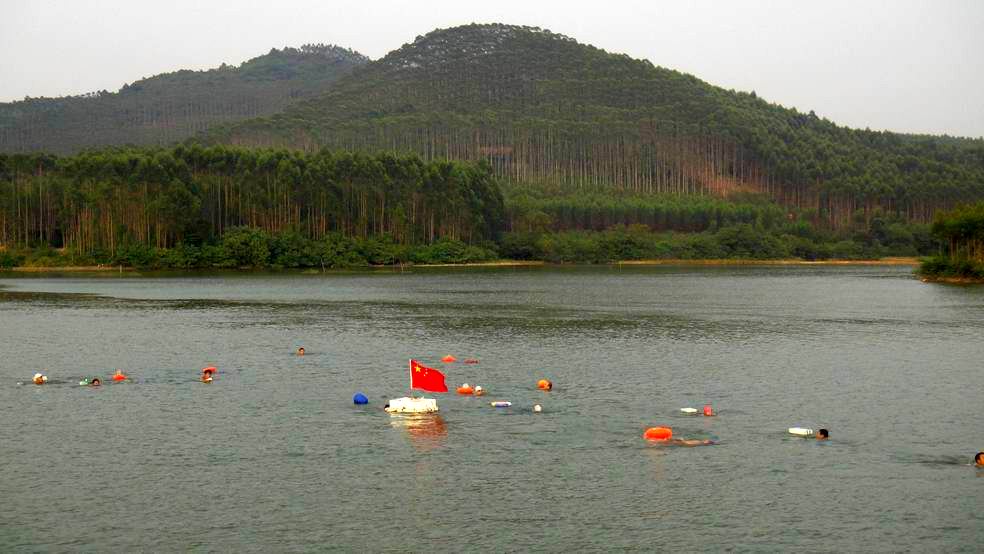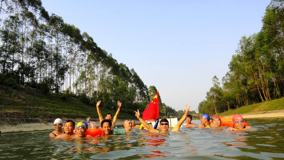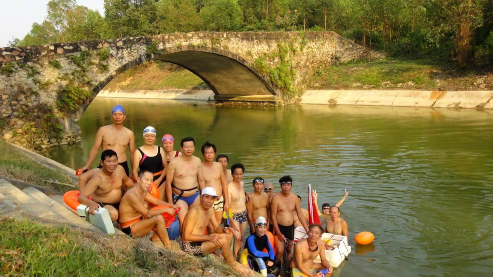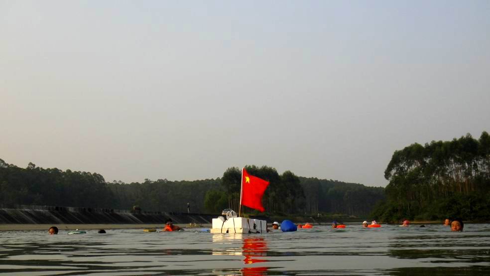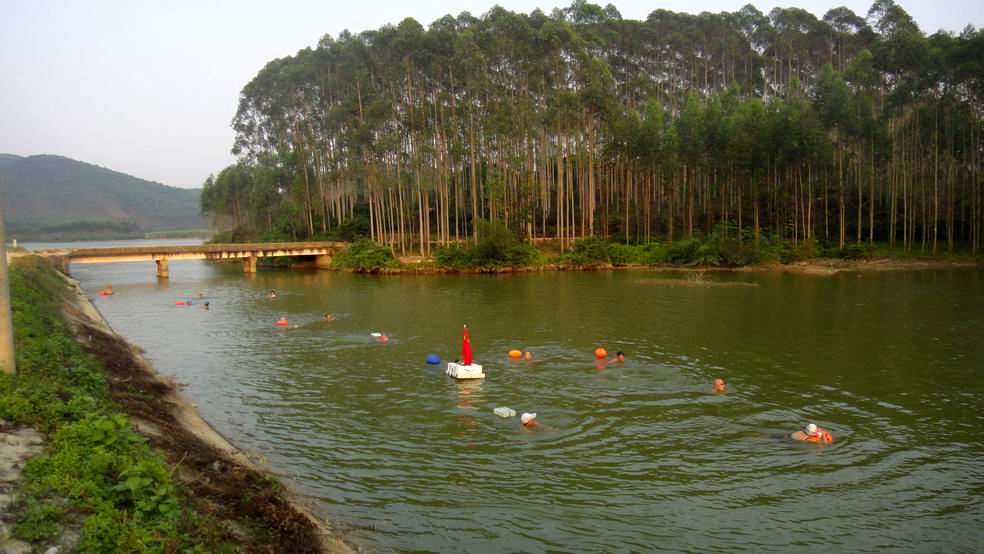 10月6日北海摇水井海泳队在合浦县清水江水库和湖海运河开展烧烤窑鸡和漂游活动