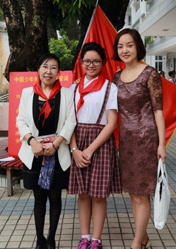 【深圳外籍学生加入少先队】近日,深圳南头城小学举行了一个特殊的入队仪式。在国旗和队旗下,校长周玉萍给来自美国的混血儿石天丽戴上了红领巾。12岁的石天丽今年9月随家人从美国回到深圳生活,插班就读,看到同学的红领巾心生羡慕,向班主任提出了申请,经审核这名外籍学生加入了少先队。