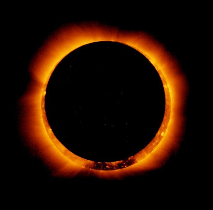 6. 2011年1月4日,轨道卫星捕捉到激动人心的环食事件,当然这张图像的拍摄巧妙运用了太阳、月球、地球还有卫星之间的运动关系