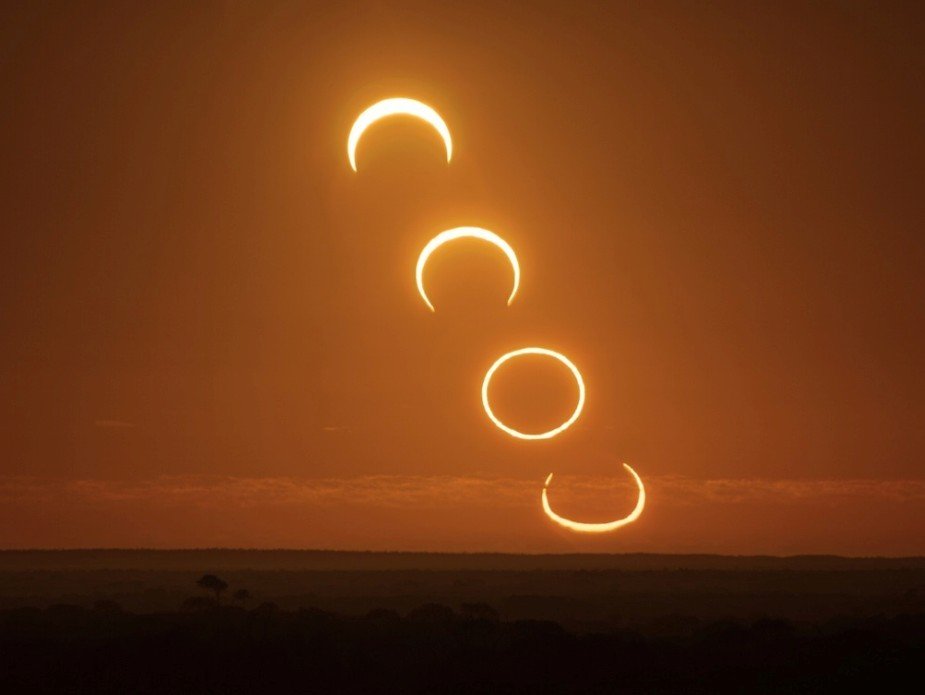 11. 图中显示的为英国皇家格林尼治天文台天文摄影师制作的2013年5月日环食事件连续叠加图像