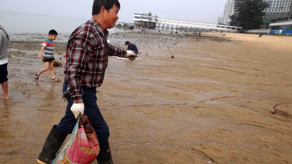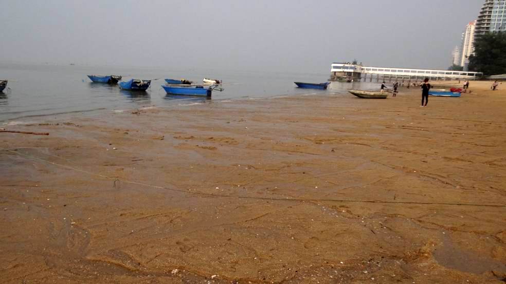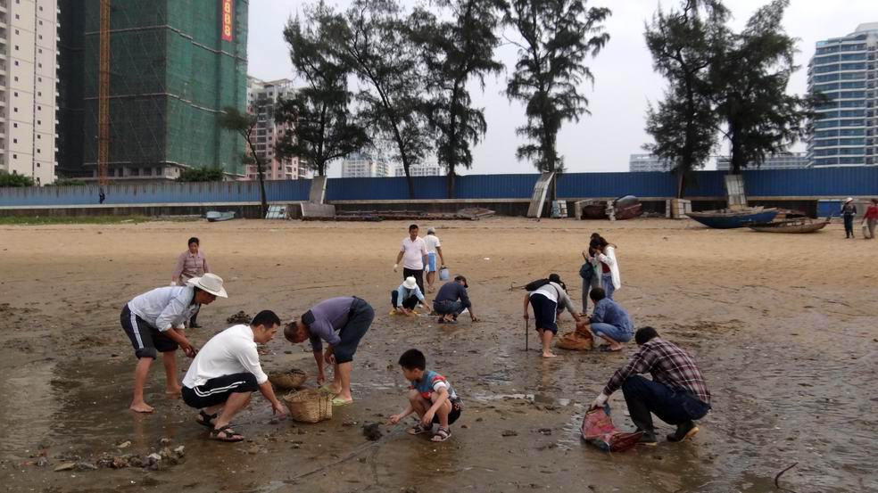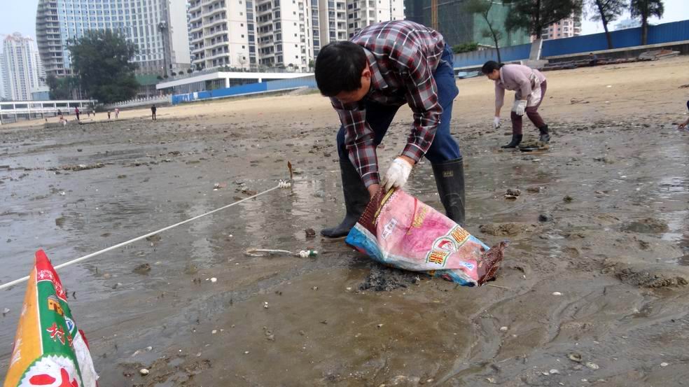 11月17日14点30分的低潮潮高1.25米,是当天的最低潮。当海潮高潮退去后,海滨公园至富丽华一带露出了大片的海滩,只见海滩上遍地都是长满牡蛎的石块、蚝壳、水泥蚝柱、碎玻璃和啤酒瓶等垃圾,这些垃圾影响了这片海滩的美丽,也威胁到在此旅游的游客和游泳健身的人及钓鱼的人的安全。每当海水涨潮淹没这些长满牡蛎的石块和水泥蚝柱等垃圾时,人们光脚在海滩上趟水时极容易被这些石头和垃圾割伤脚板底和踢破脚指头。