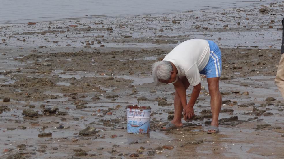 当海潮退去后露出了大片的海滩,在海滩上布满了石块、蚝壳、水泥蚝柱和碎玻璃,这些长满牡蛎的石块和水泥蚝柱等垃圾影响了这片沙滩的美丽,也威胁在此旅游的游客和游泳健身的人及钓鱼的人的安全
