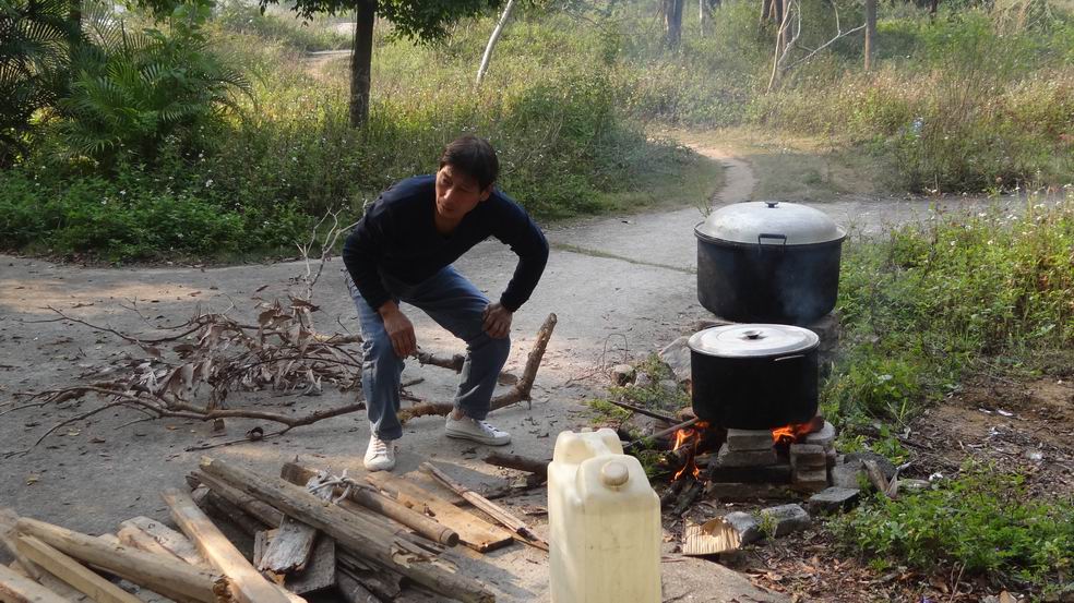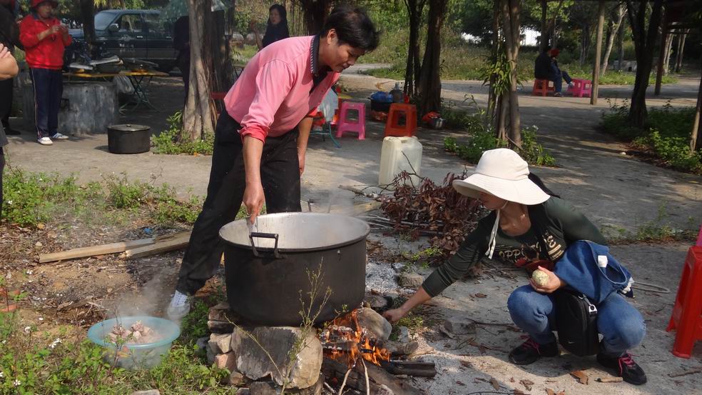 在大家打高尔夫球、乒乓球、羽毛球、气排球,游泳的时候,林师傅正率领一班人马为大家准备午餐。