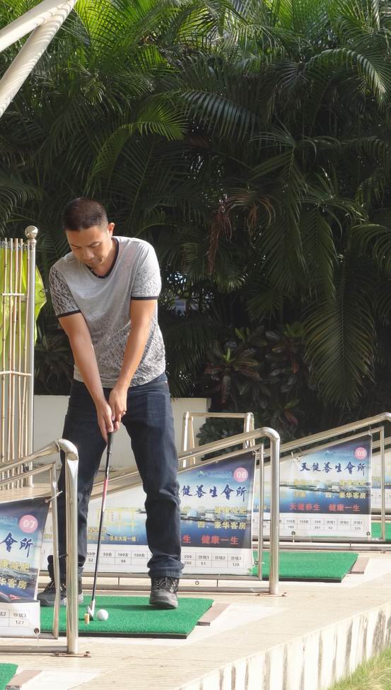 这是泳友们在体验高尔夫球运动。