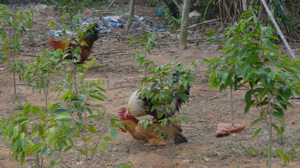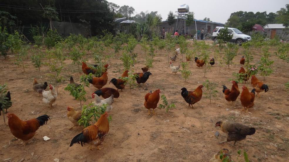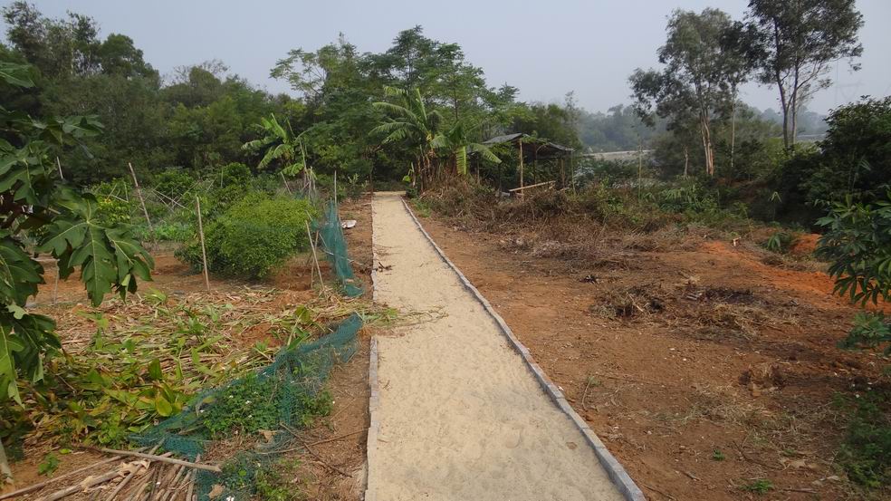目前,基地开辟两条园内道路,开垦有菜地,搭建凉亭一个,筑有烧烤炉等,基地还种有甘蔗、芋头、东笋薯、木瓜树、香蕉树、辣椒树和幼树等一批,并放养有项鸡、公鸡、腌鸡和鸭及土狗。
