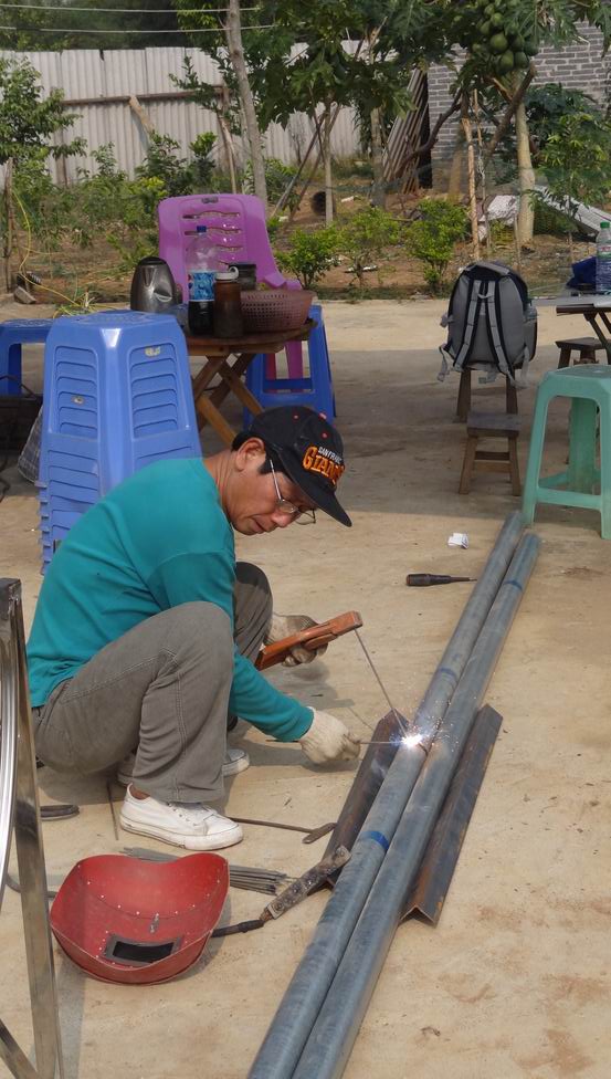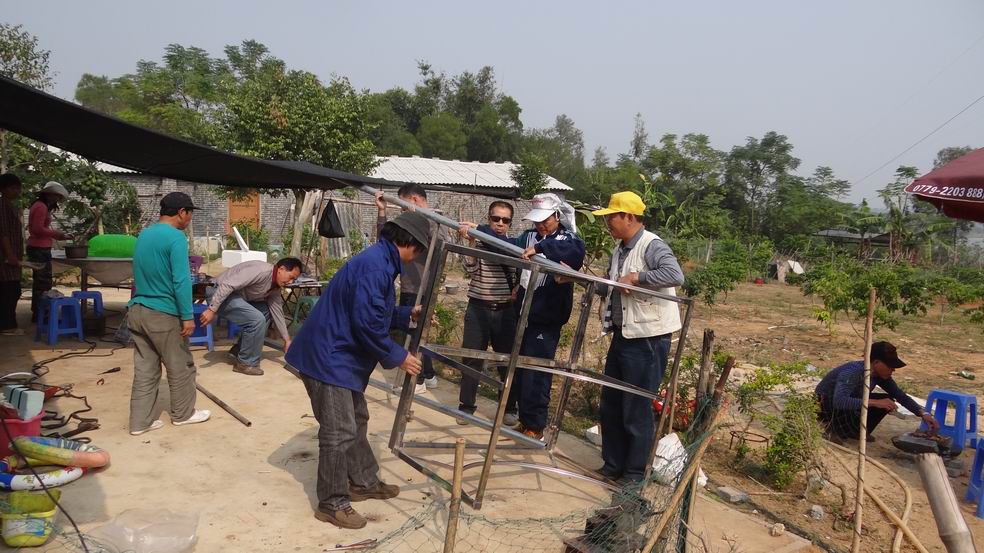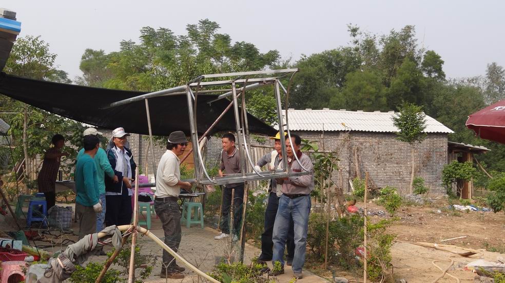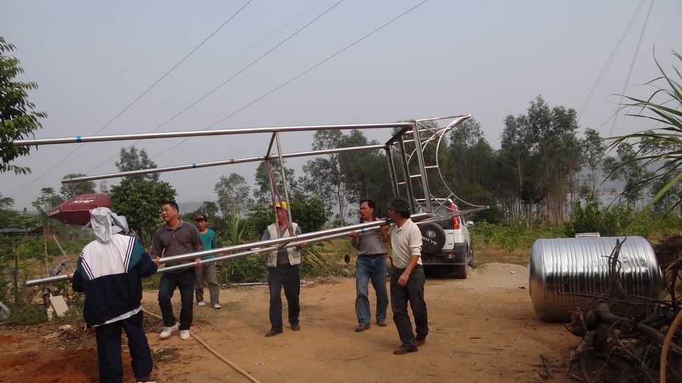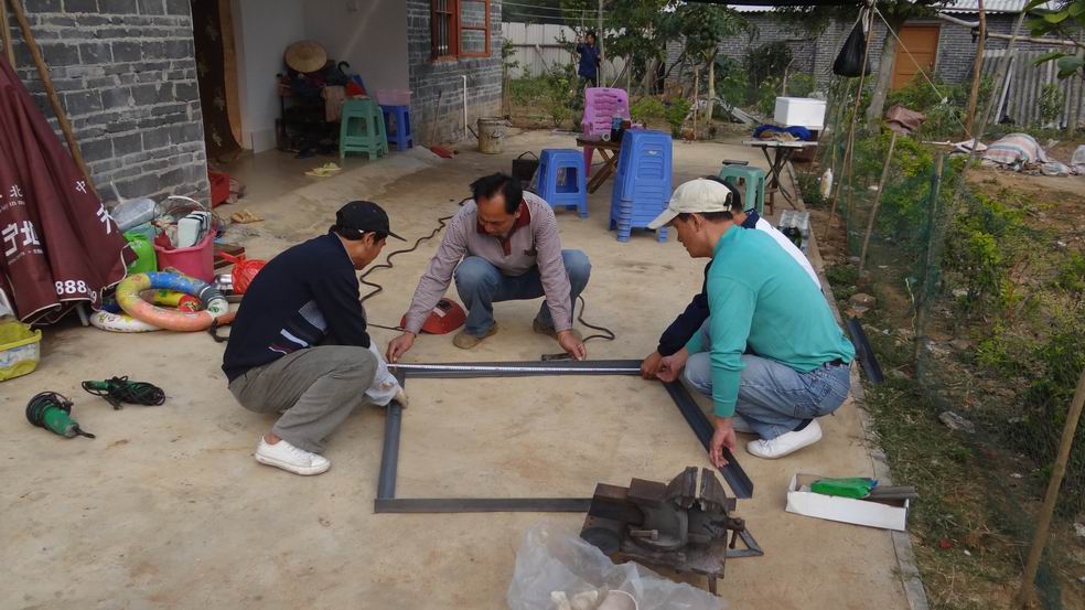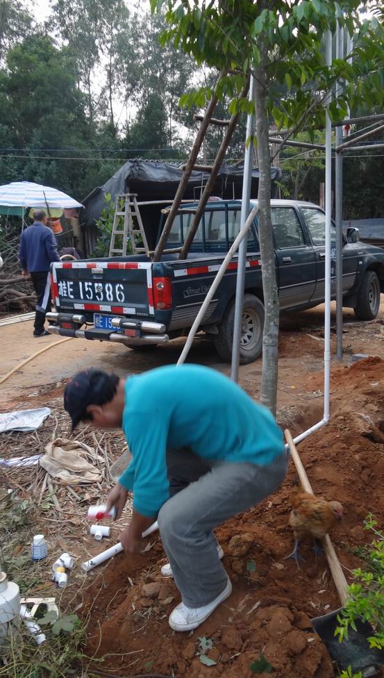 2013年12月10日,摇水井海泳队12名队员携带电焊机、切割机、台钳等工具前往远郊的摇水井海泳队孙东活动基地为基地布设供水爱管道和安装水塔等进行施工工作。