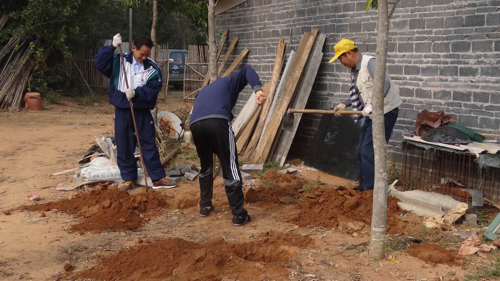 摇水井海泳队孙东活动基地建设才一年多,由于各项基础设施建设正在进行中,接待能力有限,所以我们很多项目目前还暂时不能开展。为了早日建设好基地,把基地建设成为融农家乐、烧烤、窑鸡、骑行和露营接待驿站、水上休闲运动、草地气排球场和天然草坪草根高尔夫球场为一体的综合性活动中心,使基地早日形成接待能力,摇水井海泳队的林师傅、梁师傅、潘师傅、水漫金山、苏师傅、周师傅、阿东、阿凡提、赵师傅、曾师傅等队员多次利用休息时间到基地义务劳动,为基地建设服务。