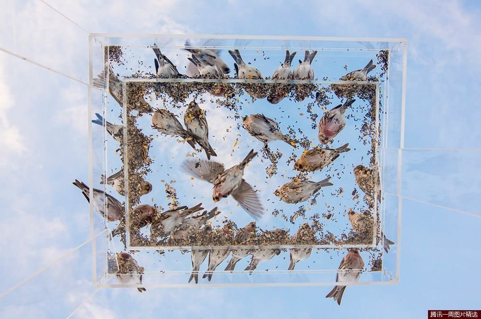 2013年12月13日报道,美国阿拉斯加,摄影师Tim Grams在其住所后院拍摄的鸟儿捕食画面