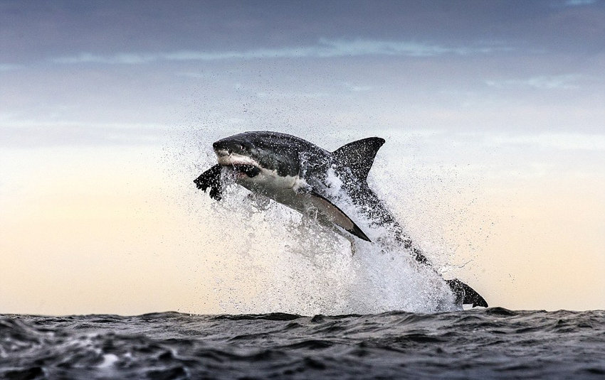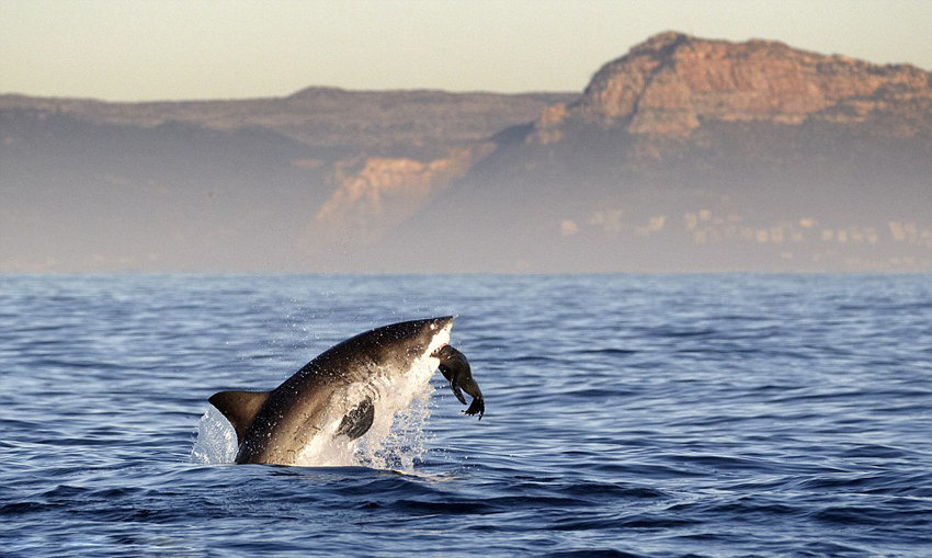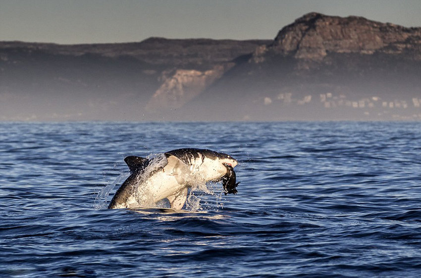 【艺术大观】英国《每日邮报》12月23日刊登了一组大白鲨跃出水面疯狂捕食海豹的惊人照片。报道称,这组照片是新西兰摄影师克里斯(Chris McLennan)在南非开普敦附近的海豹岛拍摄到的。克里斯称,拍摄期间,大白鲨在疯狂捕食时一个小时内竟跃出水面28次。