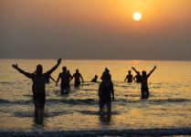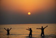 新年寄语: 欢庆元旦聚一堂, 大海扬波迎曙光。 黎明序曲鼓乐鸣, 圣钟祈福纳吉祥。 燔柴祀日传古风, 新年寄语诉理想。 冬泳健身冰水游, 梦圆日照祭太阳。