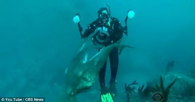 最终启动相机闪光灯才将这只巨型章鱼吓退。