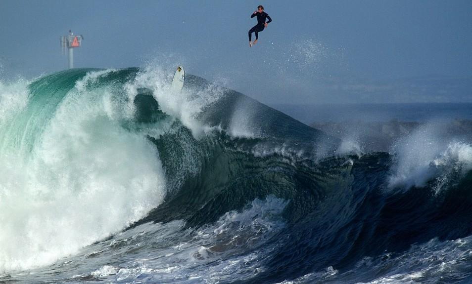 摄影师抓拍冲浪者被浪打飞 翻滚瞬间