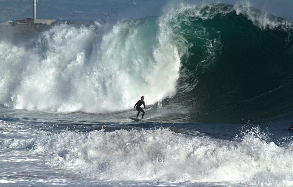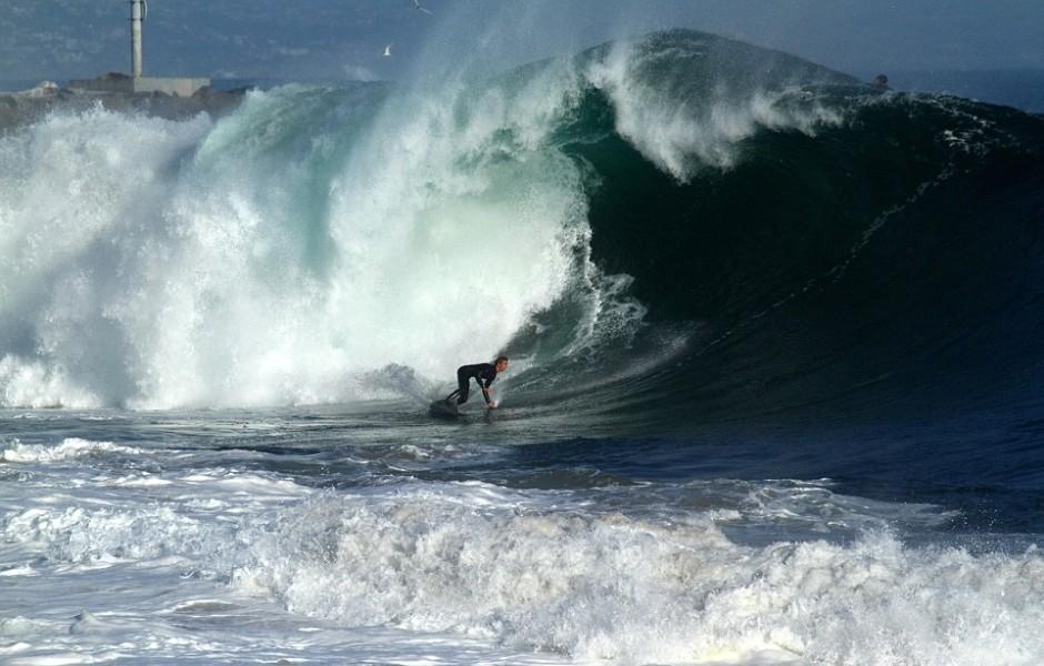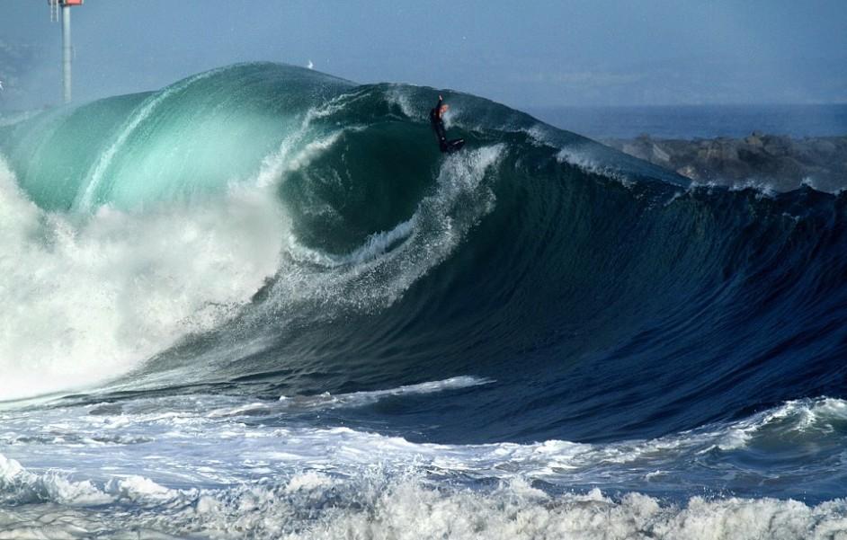 波比在海浪底部追随海浪的速度,摄影师约翰-萨拉诺阿用连拍镜头记录了波比的惊险一刻。