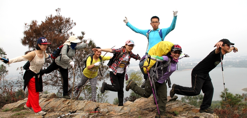 冬泳人在明媚的阳光下爬上牛尾岭放飞心情。