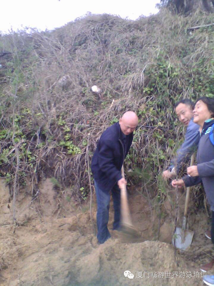 每天下午,厦门畅游世界海之韵冬泳队都在海韵台沙滩游泳,常年坚持不懈。今天,泳友们自发组织植树节活动,冬泳起岸,每人一棵树。