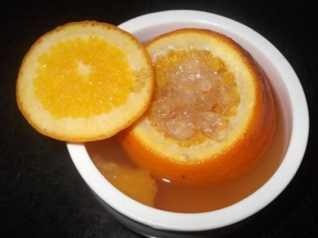 5)橙子切开顶部 当盖。( [7 l: {1 @% N) D" o