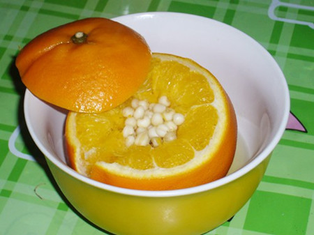 7)燕窝放进橙子里,加点点水。7 F. |( }" D* O* \) N