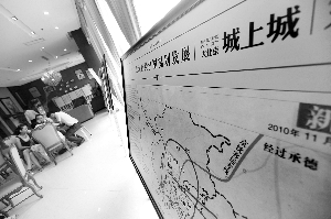 售楼中心门口,大红色条幅“笑迎京津客,嘉禾热卖中”很是夺目。一辆辆挂着北京或河北牌照的轿车进进出出,大厅里的热闹程度,让人有种打折搞促销的错觉。