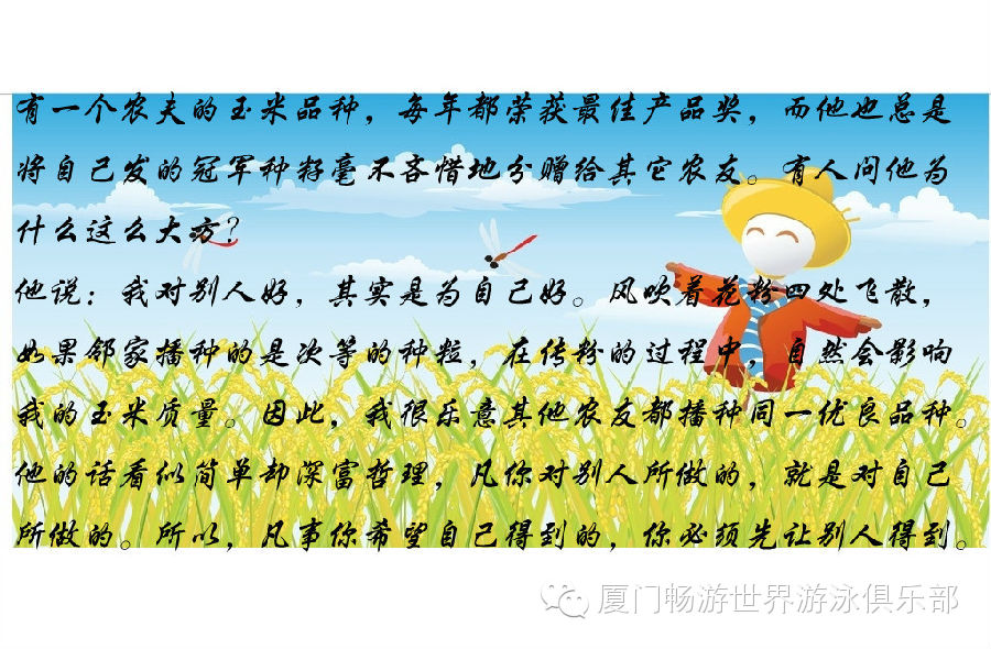 就像那个农夫一样,如果你想要得到冠军的品种,就要给别人冠军的种籽。
