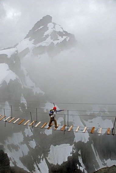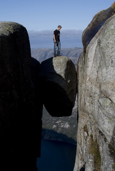 挪威的谢拉格山的奇石,下面就是3000英尺深的峡谷,勇敢者的挑战