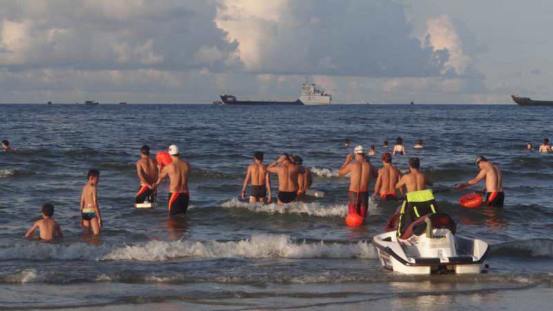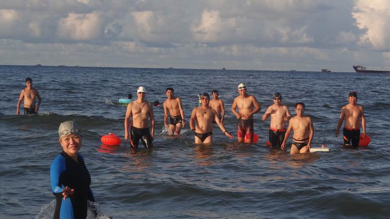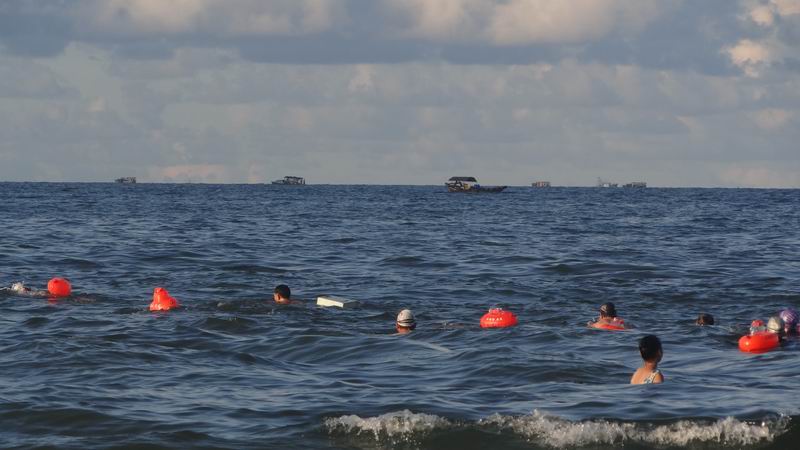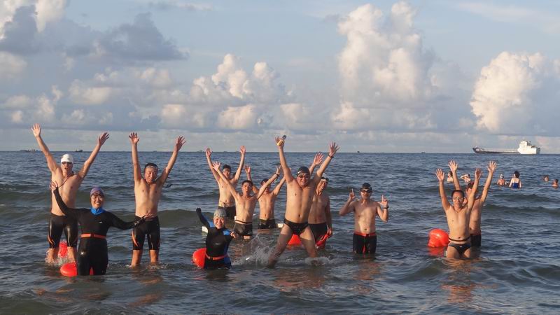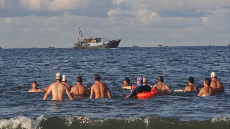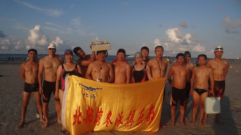 七夕,北海北部湾冬泳俱乐部部分队员到罗马广场畅游大海看人间仙女