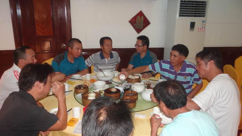 游了七夕仙水,我们又到迎宾馆喝早茶,感谢水上漂同志。