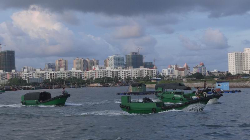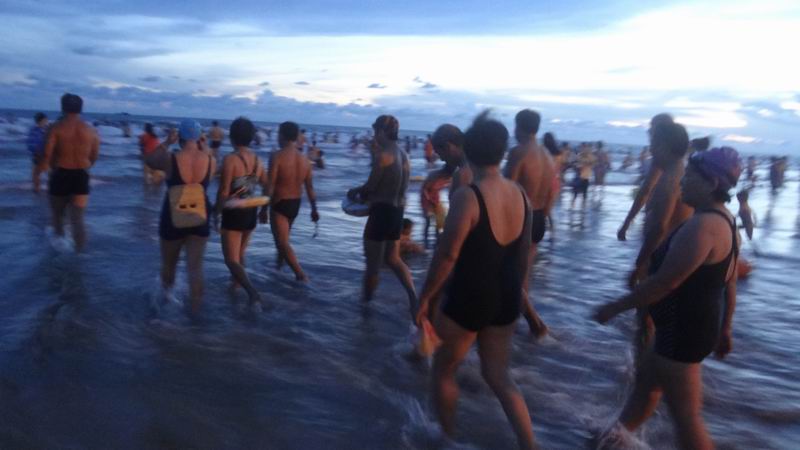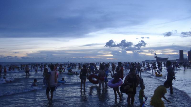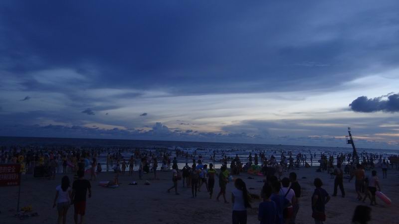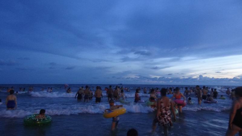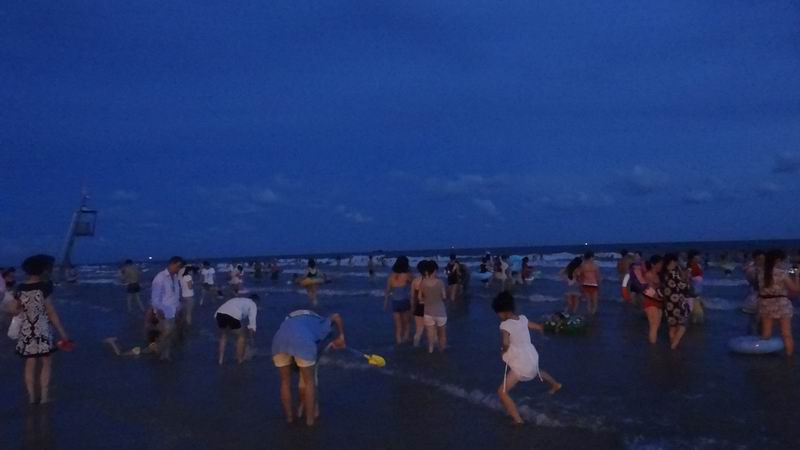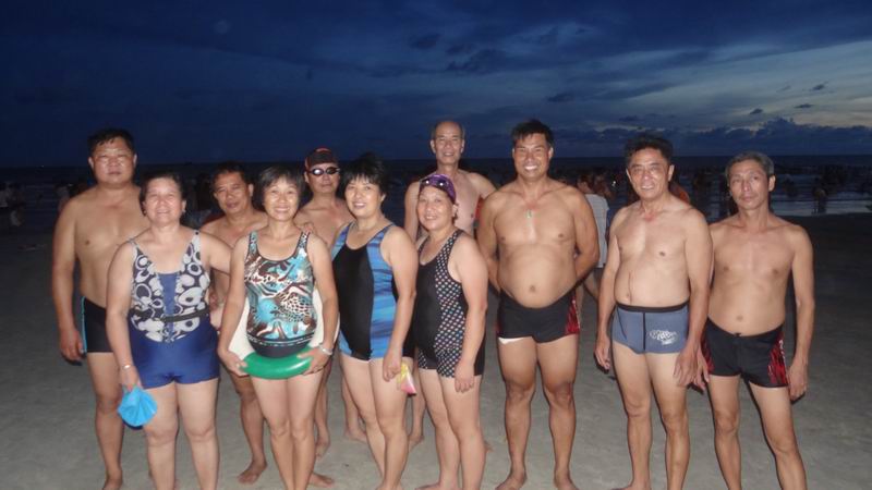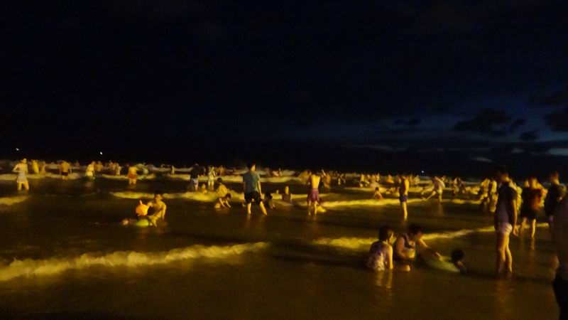 7月16日夜晚,合浦县南流江漂游俱乐部部分队员从合浦来到侨港天然海水浴场搏击风浪消暑。