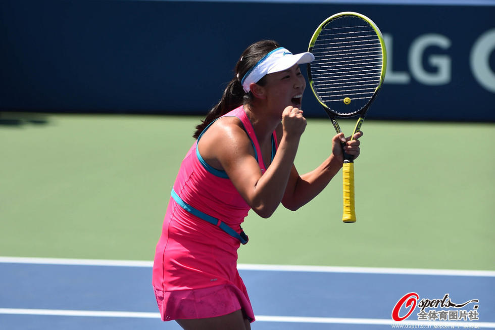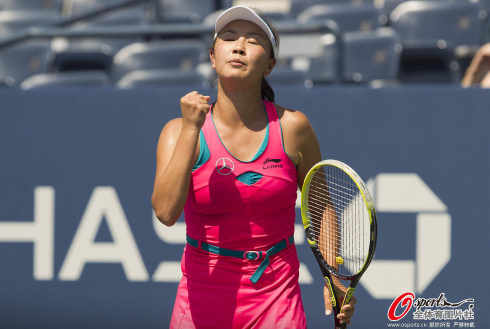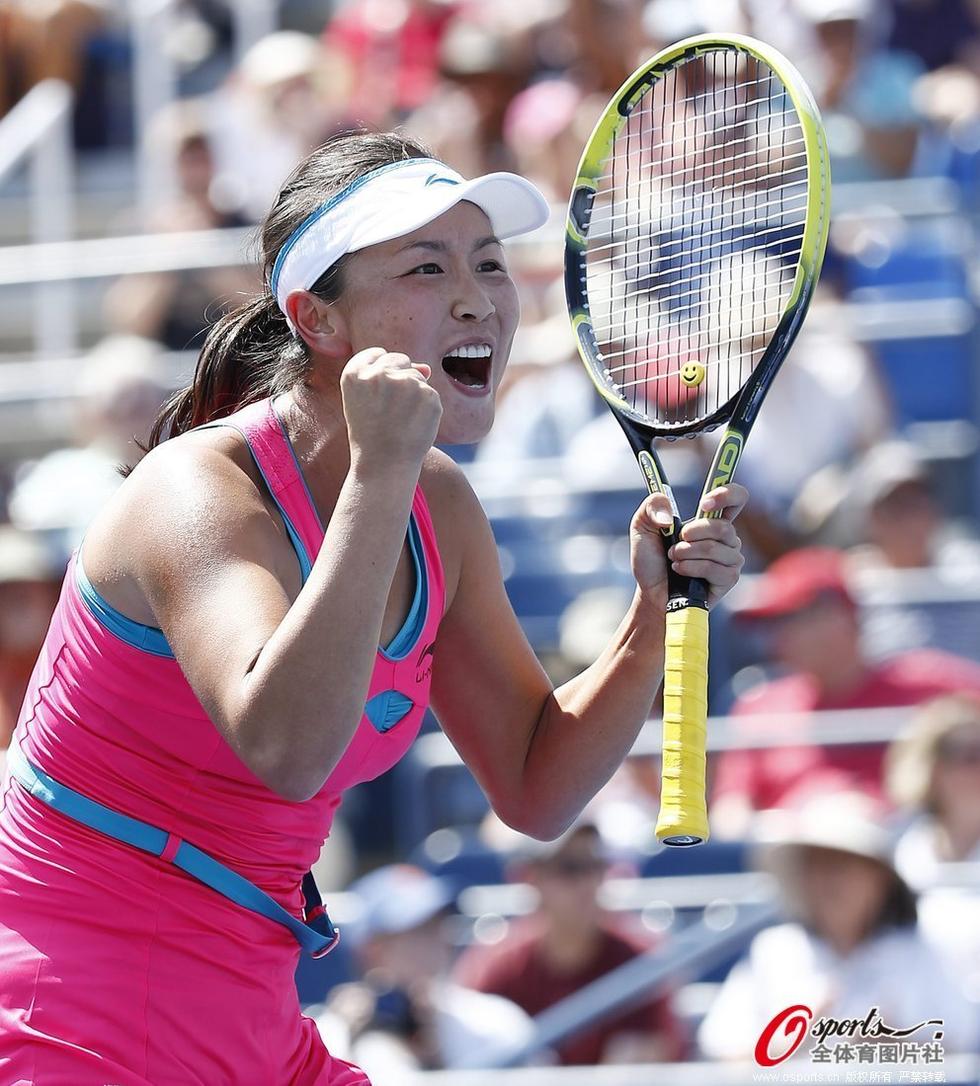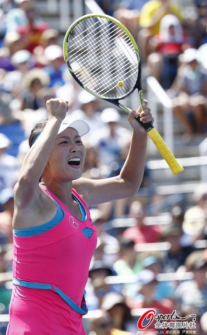 2014年8月28日,2014年美国网球公开赛女单第2轮:彭帅2:0胜四号种子A-拉德万斯卡。赢球后的彭帅激动异常,握拳大吼。